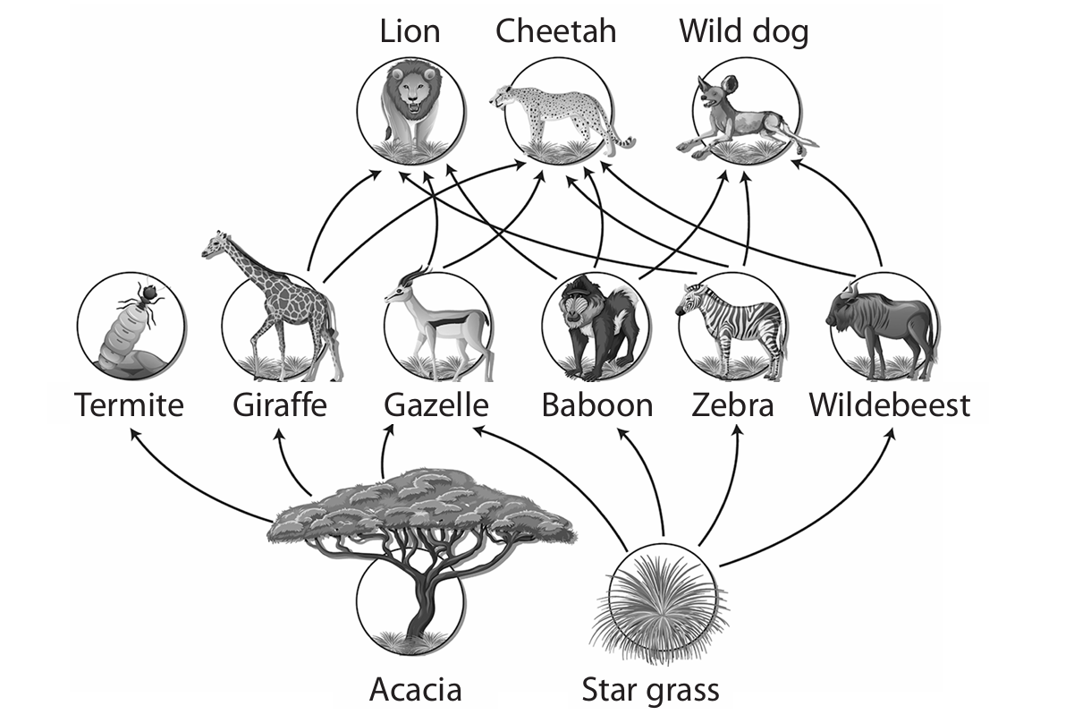 (a) Draw a food web showing these feeding relationships.
