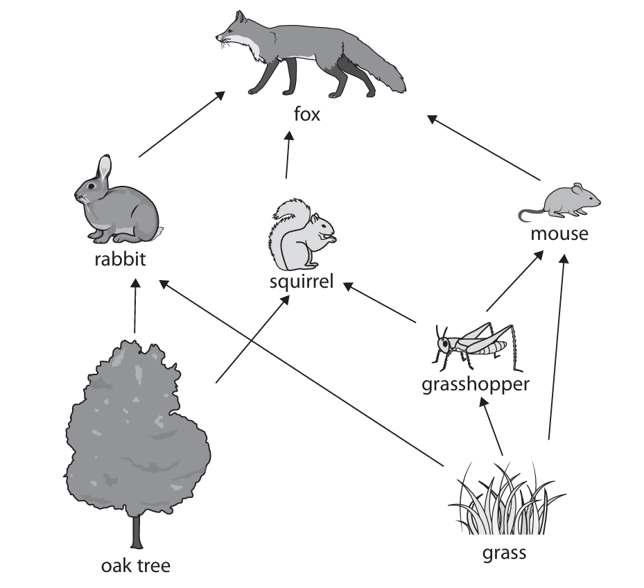 • Arrows in correct direction (e.g., plants → caterpillars → mice → owls; plants → mice).