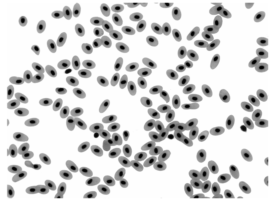 Human blood contains red blood cells and white blood cells.