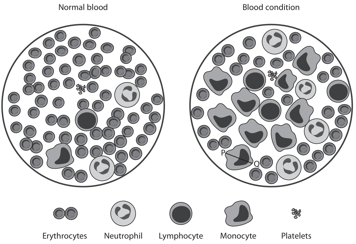 (a) The table shows the number of these blood cells in a sample of blood.