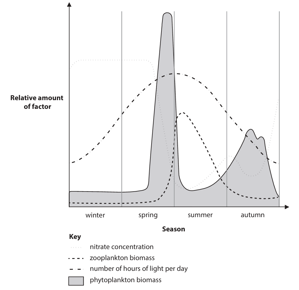 (b) Scientists measure the changes in the biomasses of phytoplankton and zooplankton in one year.