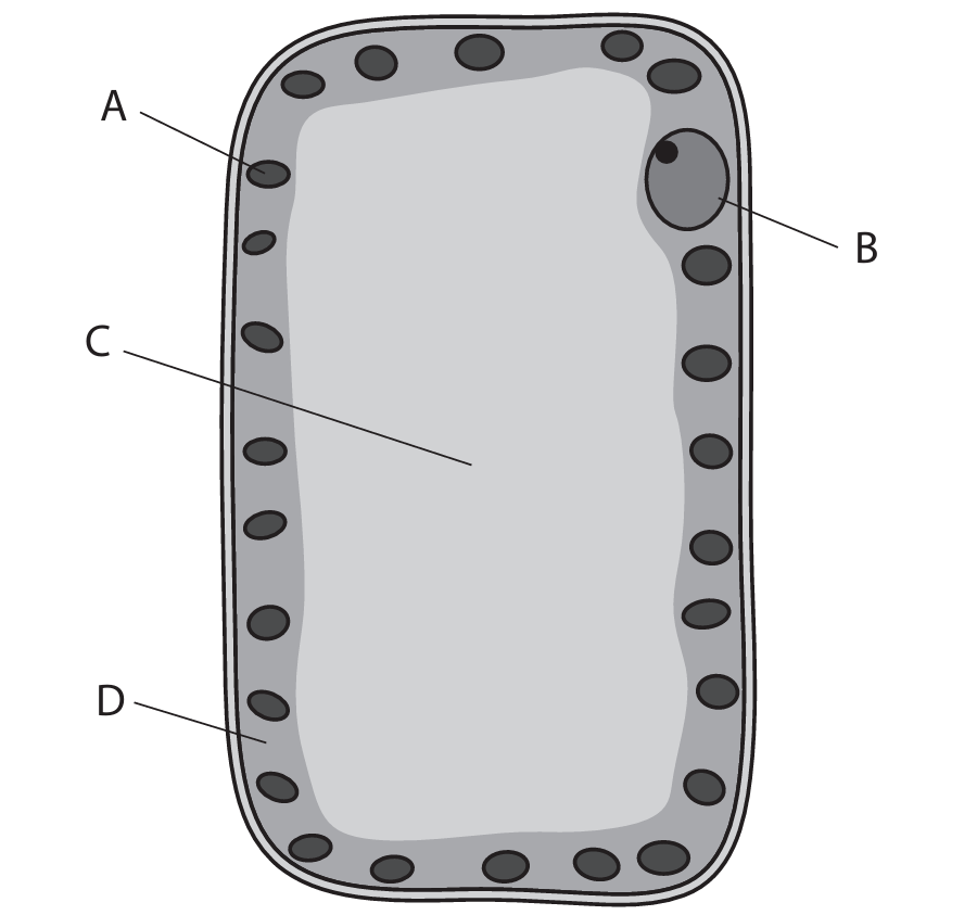 (b) Euglena has some structures that are found in plant cells but not in animal cells. Which labelled structure is found in plant cells but not in animal cells?