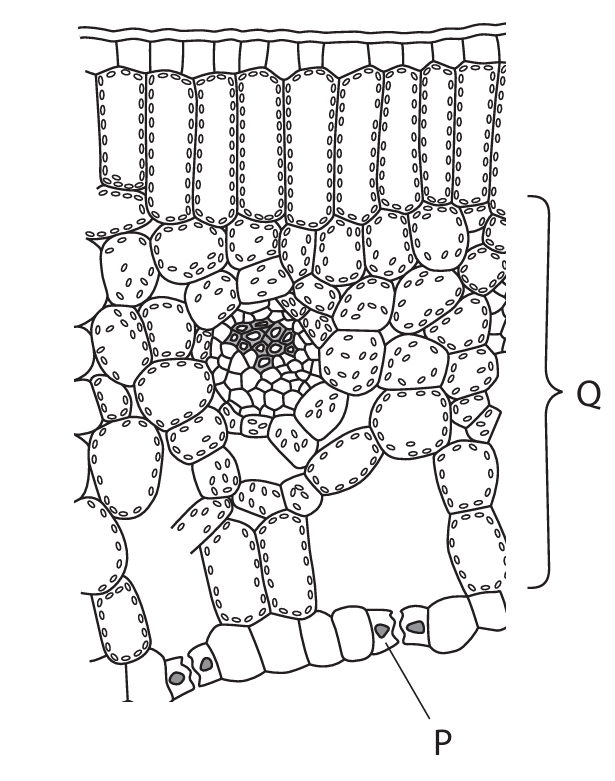 The diagram shows a cross section through a plant leaf.
