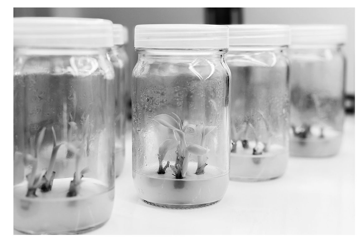 – add pollen grains to the solution in each flask
