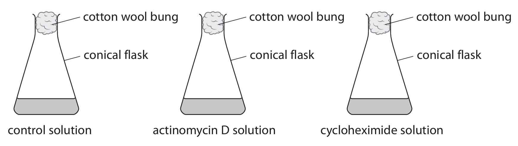 (ii) Actinomycin D prevents transcription and cycloheximide prevents translation.