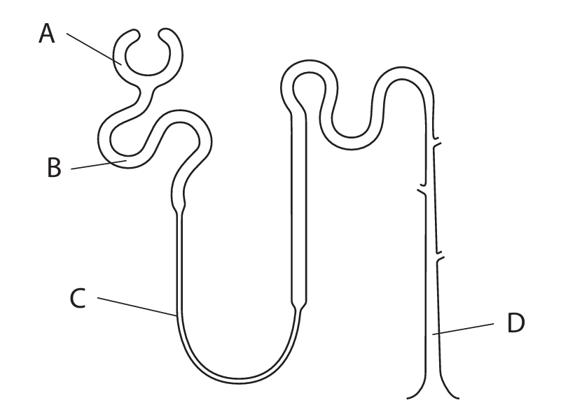 The diagram shows a nephron.