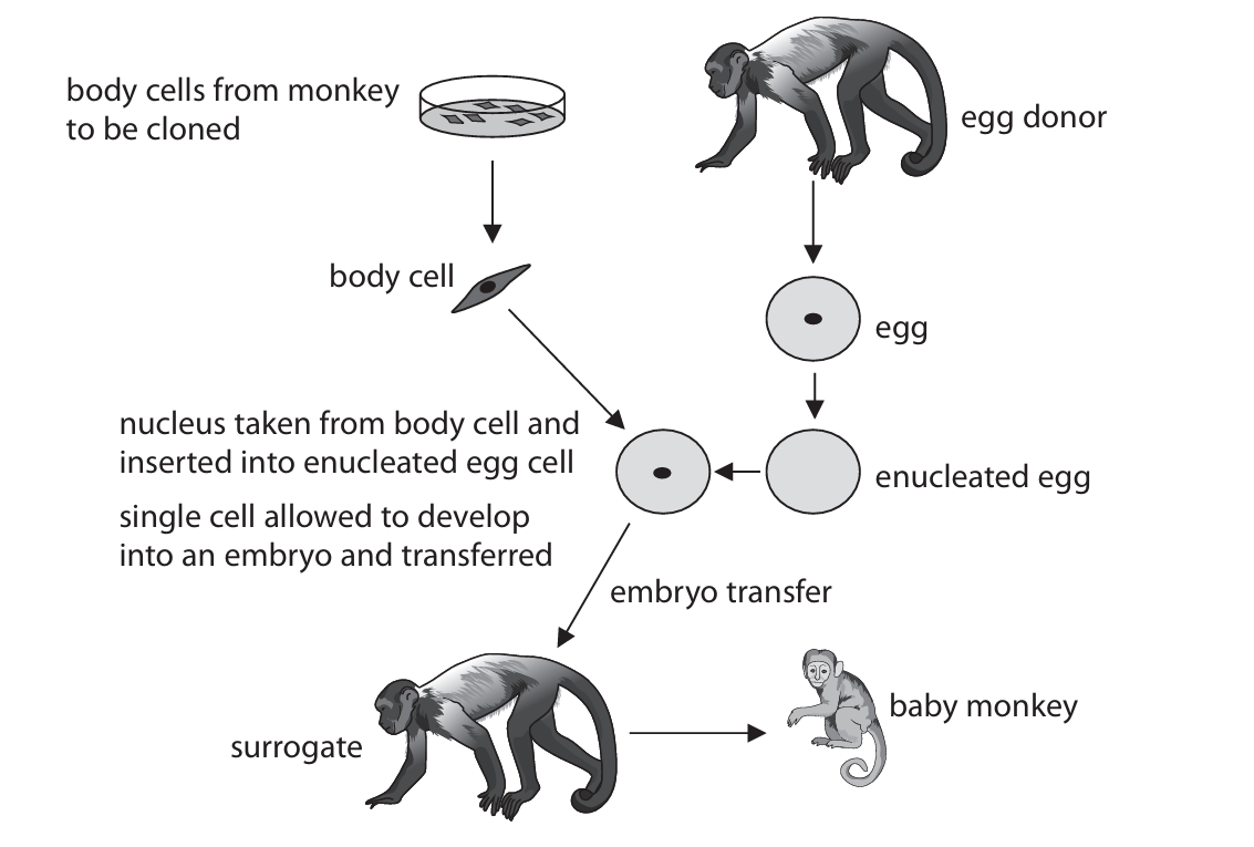 (b) Scientists can use adult body cells or fetal body cells to clone monkeys.
