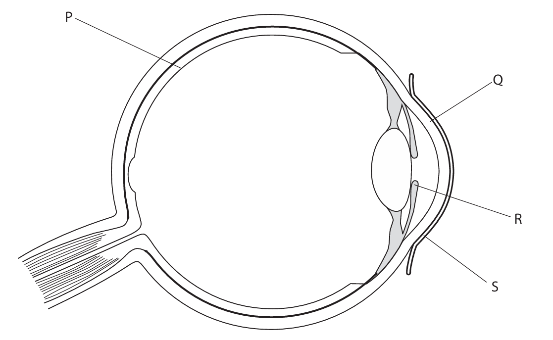 The diagram shows a human eye with some structures labelled.