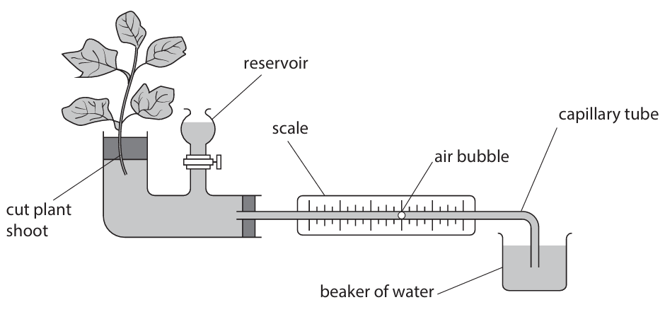 (b) A student uses this apparatus to measure the water uptake by a cut plant shoot.