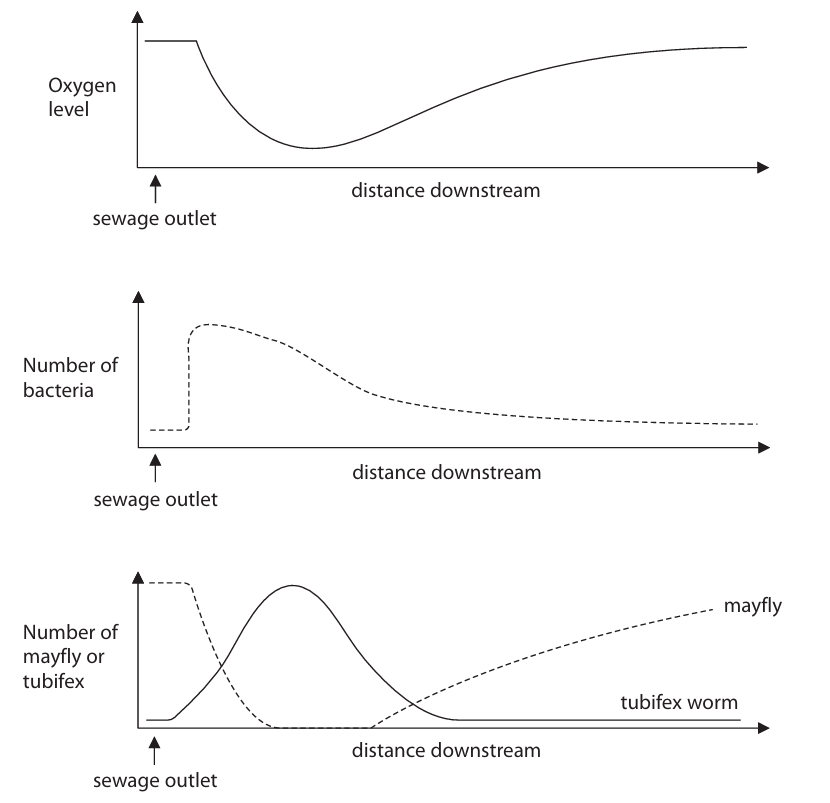 (c)(i) Sewage fungus is not a fungus but is made from several different species of bacteria.