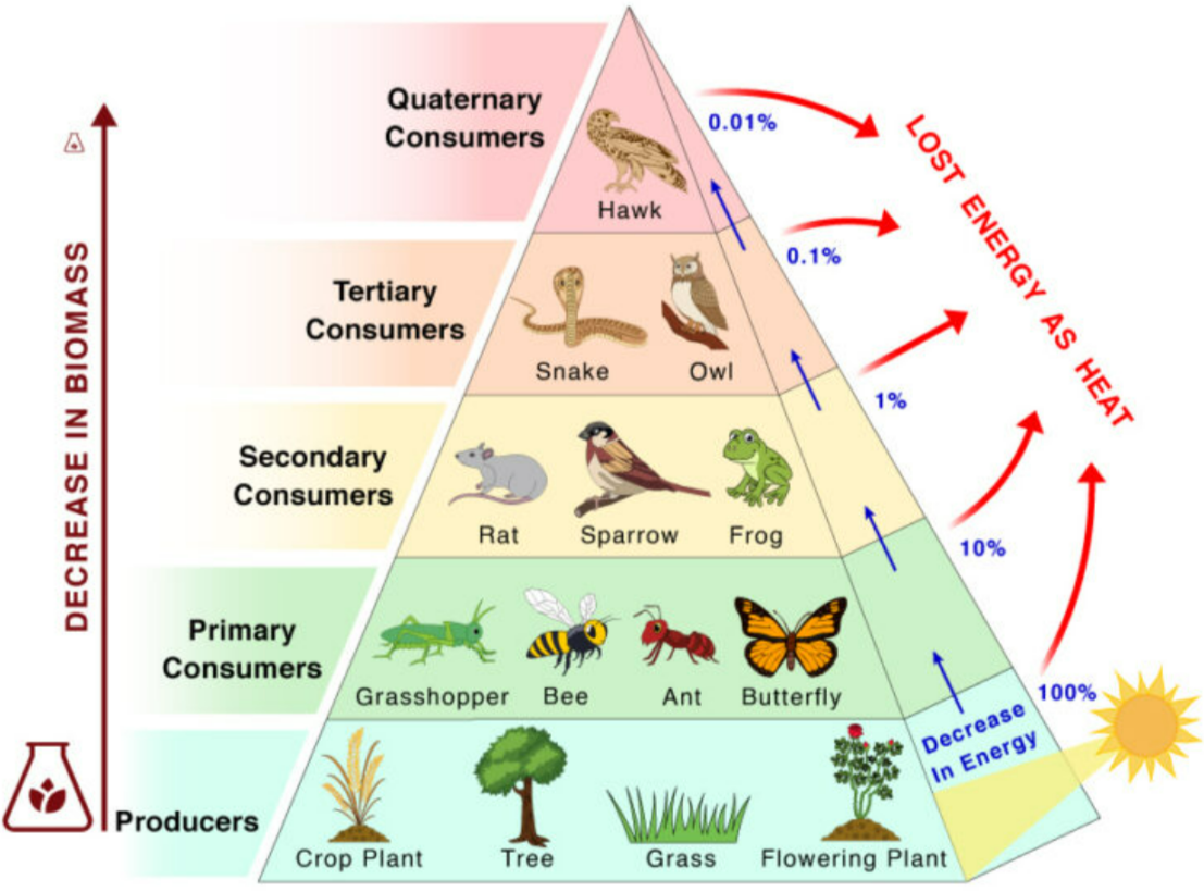 Rule: Only ~10% energy transfer between trophic levels.