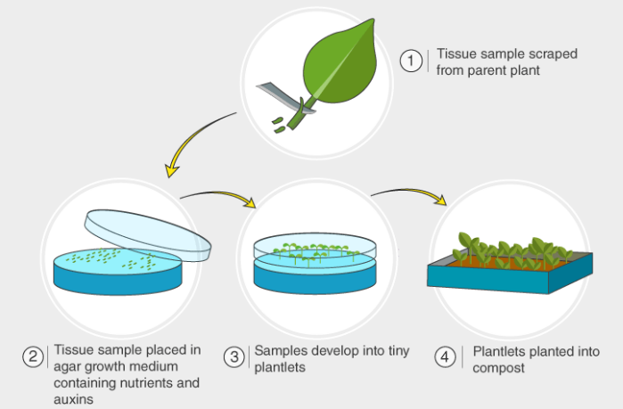 6.18B understand how micropropagation can be used to produce commercial quantities of genetically identical plants with desirable characteristics
