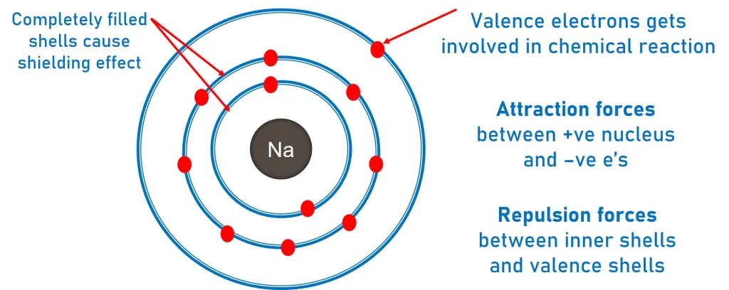 Period 3 → 3 shells (e.g. sodium: 2,8,1)