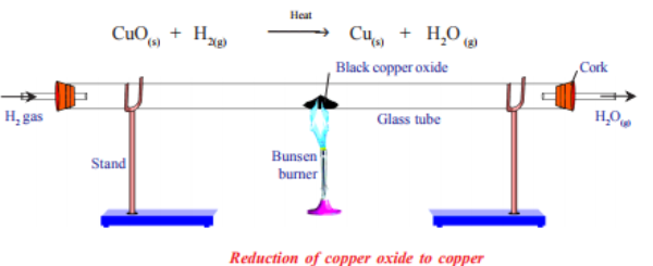 \( \mathrm{CuO} + \mathrm{H_2} \rightarrow \mathrm{Cu} + \mathrm{H_2O} \)
