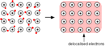 | Electrons | Delocalised between ions |