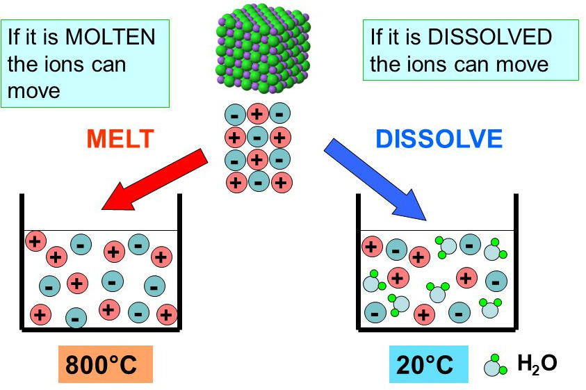 1.56C understand why ionic compounds conduct electricity only when molten or in aqueous solution