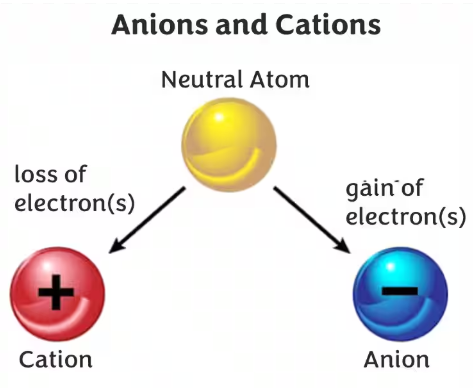 | Cation | Positive (+) | Loss of electrons | \( \mathrm{Na^+} \) |