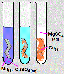 | Magnesium | \( \mathrm{CuO} \) | Yes | Mg more reactive than Cu |
