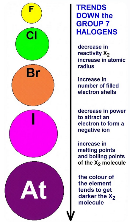 2.6 use knowledge of trends in Group 7 to predict the properties of other halogens