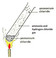 When heated, ammonium chloride decomposes. When cooled, the gases react to form solid ammonium chloride again.