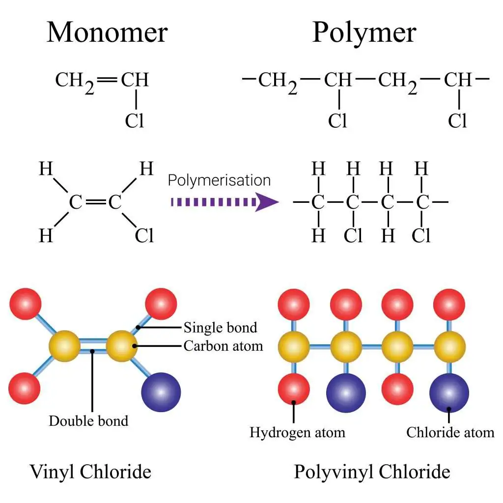 | Poly(chloroethene) | \( \mathrm{CH_2=CHCl} \) | \( \mathrm{[-CH_2-CH(Cl)-]_n} \) |