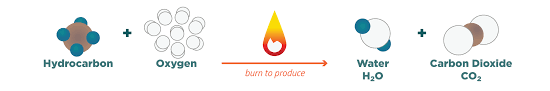 Complete combustion of hydrocarbons produces carbon dioxide and water.