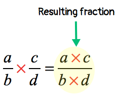 \( \dfrac{a}{b} \times \dfrac{c}{d} = \dfrac{ac}{bd} \)