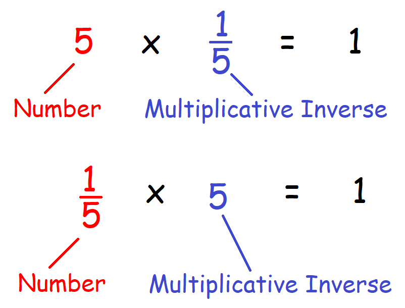 The multiplicative inverse (or reciprocal) of a number is the value that multiplies with it to give \( 1 \).