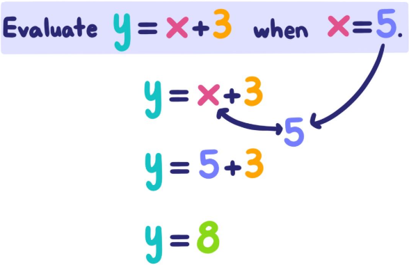 To evaluate an expression, replace each letter with the given number and then calculate the result.