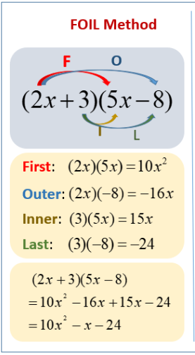 This is often called the FOIL method (First, Outer, Inner, Last).
