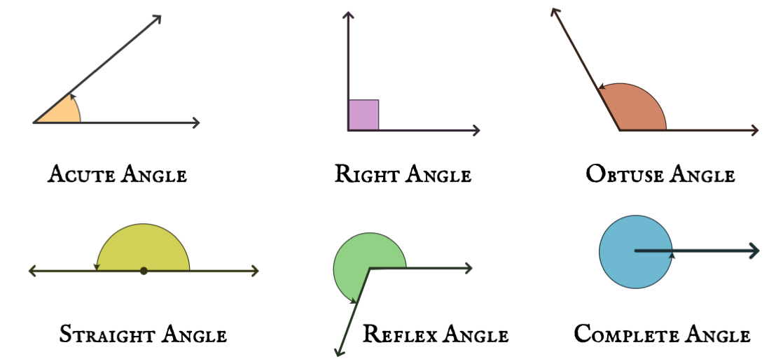 Obtuse: \( 90^\circ < \theta < 180^\circ \)