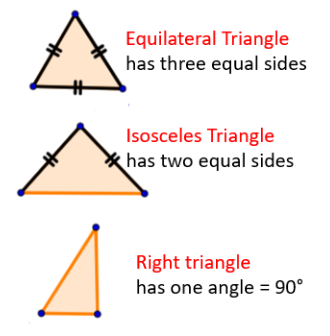D understand the terms ‘isosceles’, ‘equilateral’ and ‘right-angled triangles’ and the angle properties of these triangles