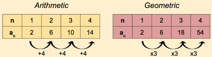 - Add the same number → arithmetic pattern