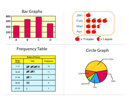 You may be given a bar chart, pie chart or pictogram and asked to find totals, differences or proportions.