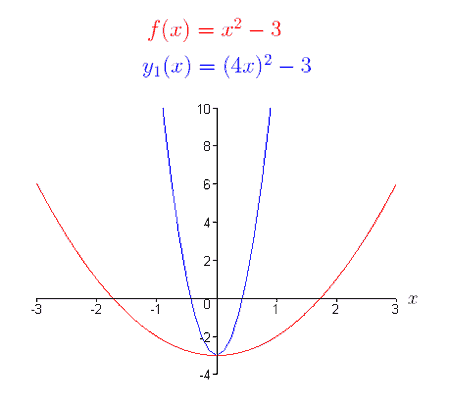 | f(bx) | Horizontal compression for |b| > 1 | (x, y) → (x/b, y) |