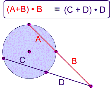 When two lines from a point outside the circle meet the circle, the rule changes slightly.