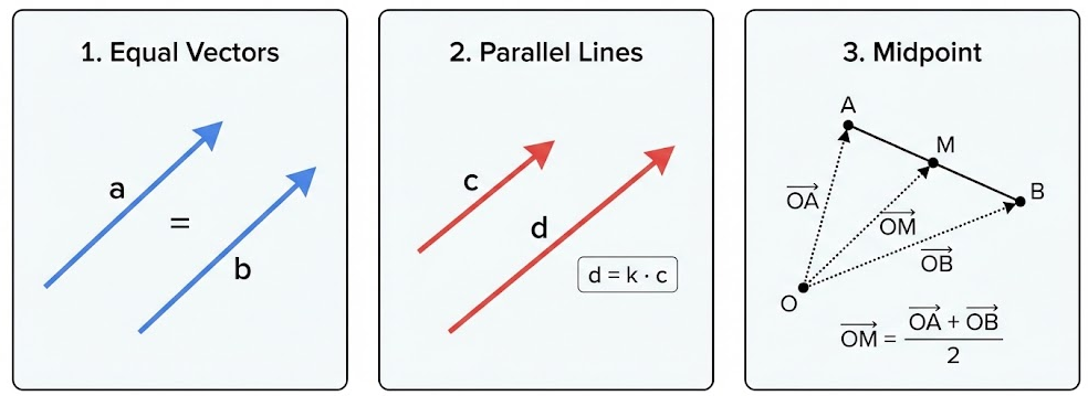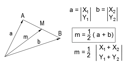 If \( A \) has position vector \( \mathbf{a} \) and \( B \) has position vector \( \mathbf{b} \), the midpoint \( M \) has position vector:
