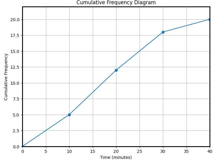 Conclusion: The cumulative frequency diagram is drawn using upper class boundaries against cumulative frequency.