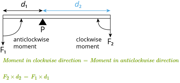 \( \mathrm{moment = force \times perpendicular\ distance\ from\ the\ pivot} \)