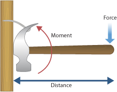 - Moment: \( \mathrm{moment = force \times perpendicular\ distance} \)