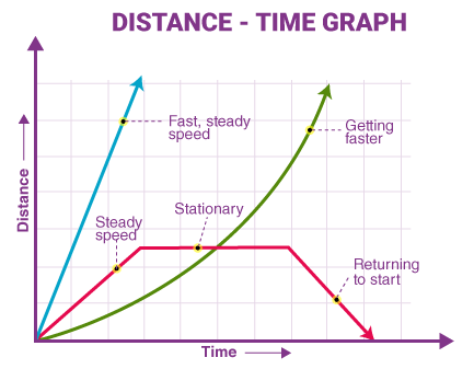 On a distance–time graph, the gradient represents speed. A steeper gradient means a higher speed, while a horizontal line means the object is at rest.