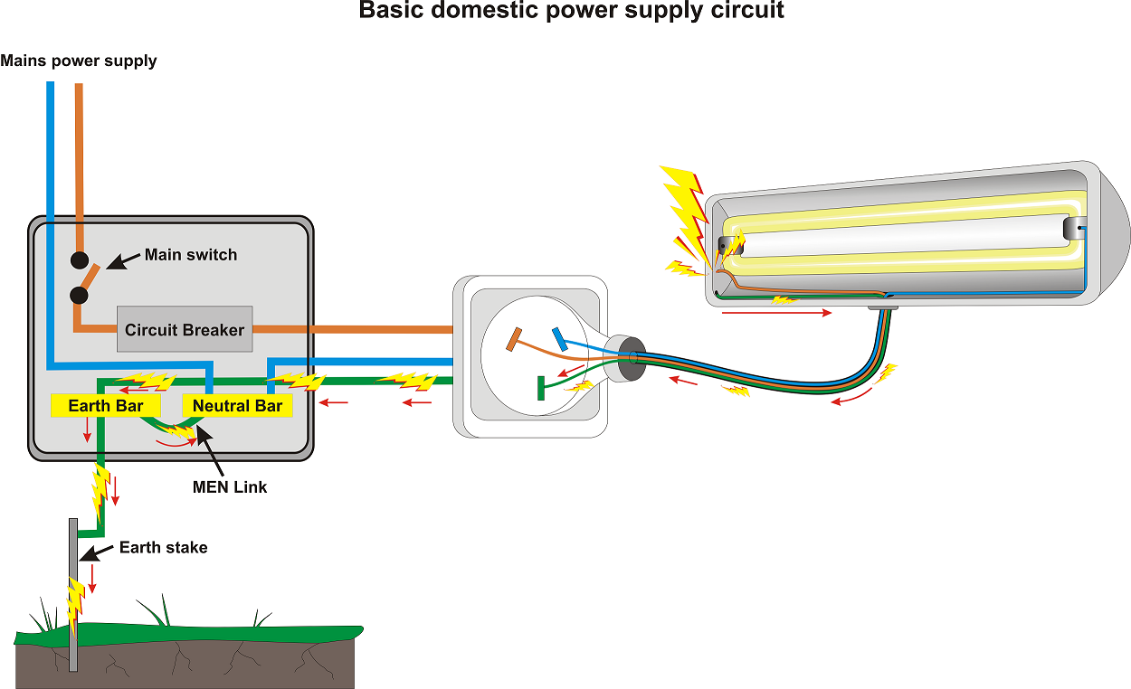 - Earthing directs fault current safely to the ground.