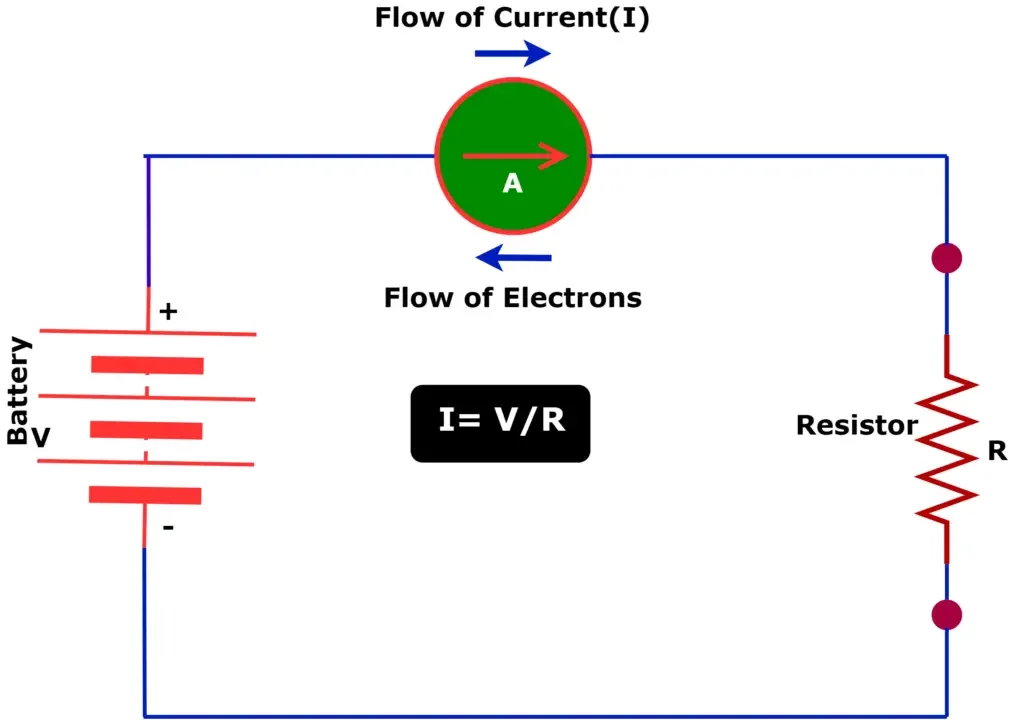 \( \mathrm{I = \dfrac{V}{R}} \)