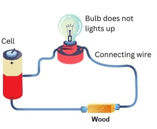 - Insulators → high \( \mathrm{R} \) → very small or zero current.