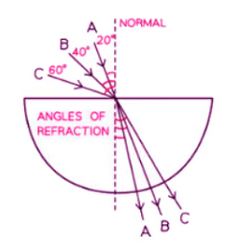 Explain why no refraction occurs when light enters a semi-circular block through the curved surface.