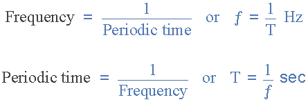\( \mathrm{frequency = \dfrac{1}{time\ period}} \)