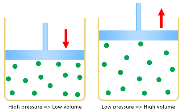 For a fixed mass of gas at constant temperature, pressure is inversely proportional to volume.![]()