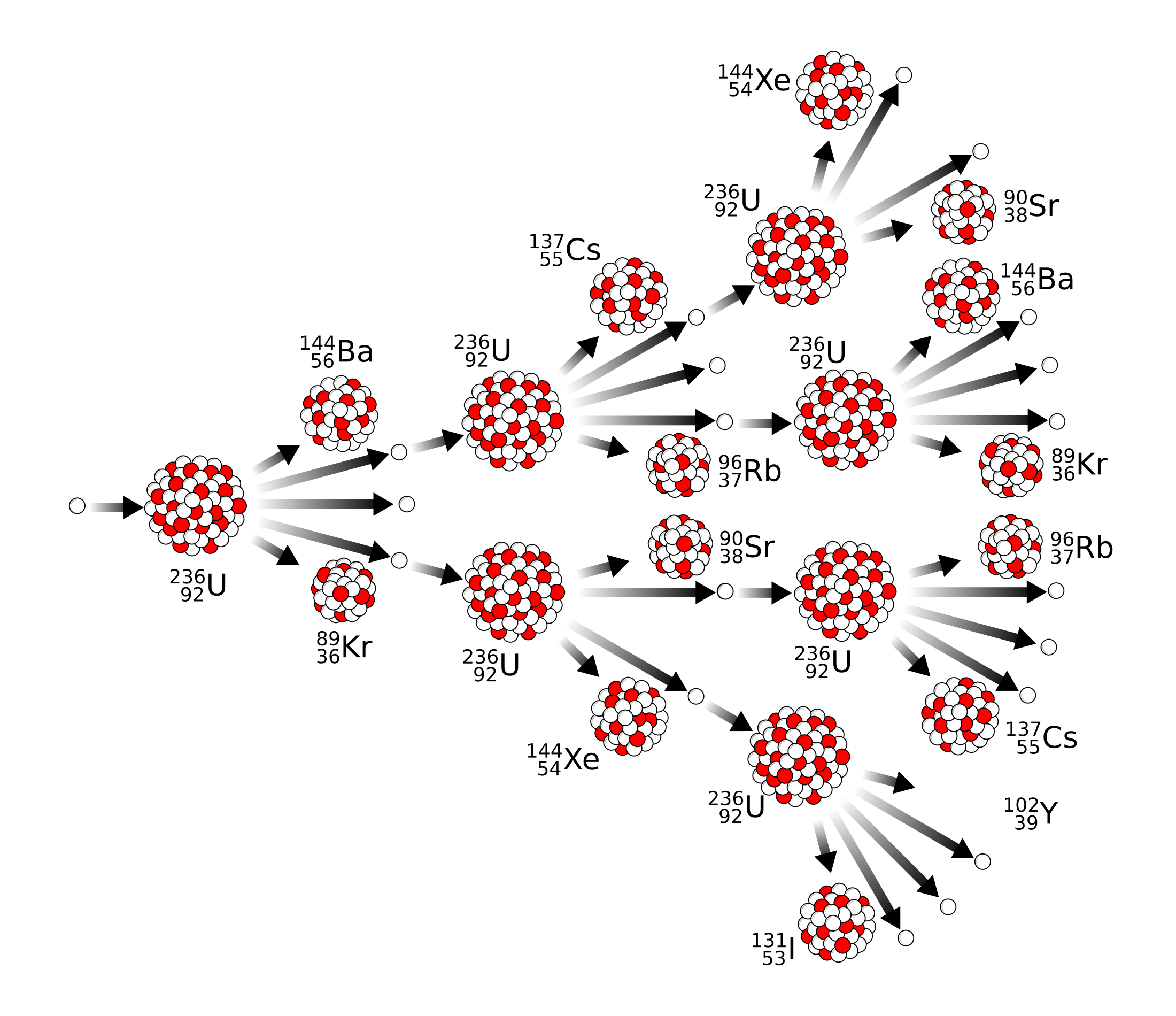 - Further fissions occur.