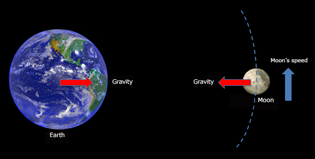 Key idea: The moon is constantly falling toward the planet but never reaches it.