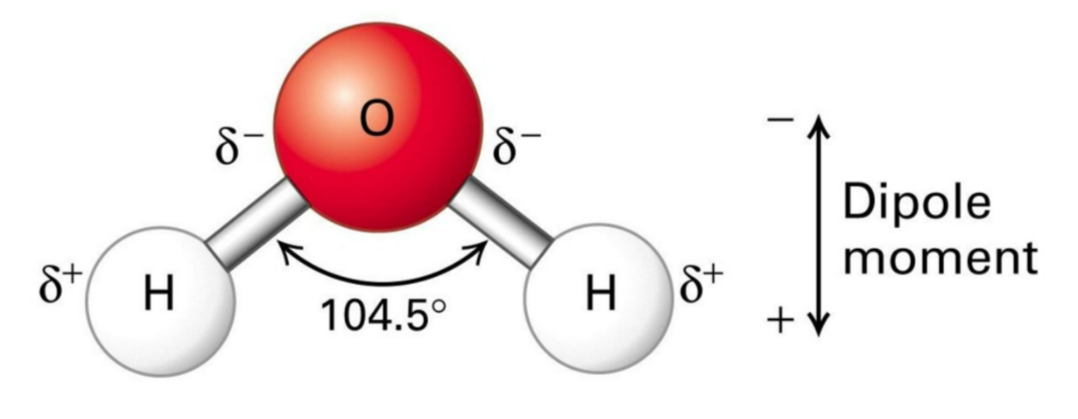 - Oxygen → slightly negative (δ–) Hydrogen → slightly positive (δ+).